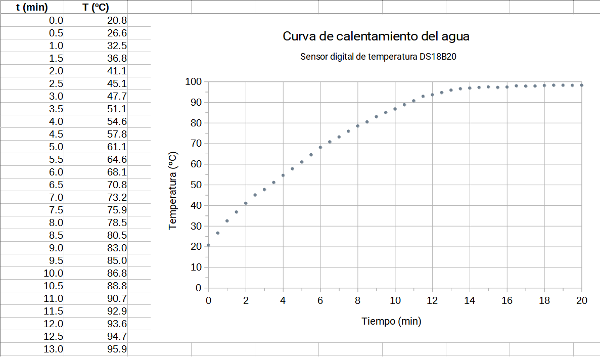 Los sensores son muy útiles también para tomar medidas en las prácticas de laboratorio. Imagina que quieres obtener la curva de calentamiento del agua. Una ventaja de usar un sensor de temperatura es que puedes copiar directamente en una hoja de cálculo los datos medidos por el sensor para su posterior análisis. Además puedes tomar una gran cantidad de medidas sin apenas esfuerzo (no sería muy práctico utilizar un termómetro y un cronómetro si necesitases tomar medidas de la temperatura cada medio segundo, ¿verdad?).
